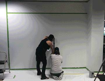 With an approved design, we bought paint and stenciled out the blocks on the wall using carbon paper. It took approximately 48 hours to complete.